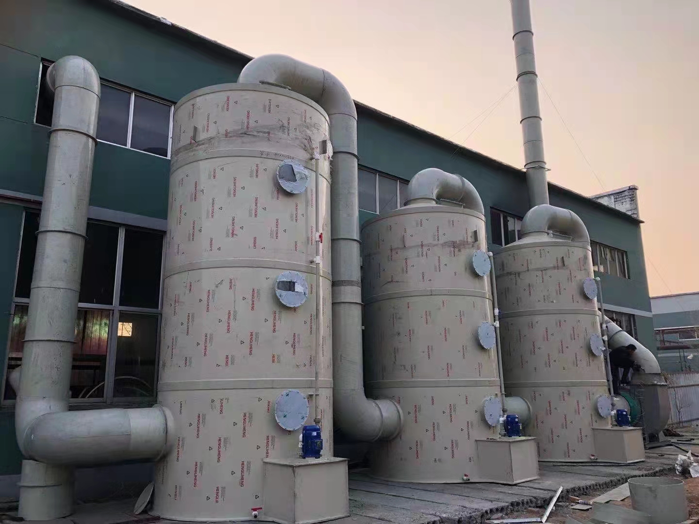 我司為制藥工廠的發(fā)酵車間設計生產制作安裝的一套含兩臺的廢氣洗滌塔、風機、煙囪、及風機控制系統和加藥控制系統,已經圓滿完成,并順利投入生產使用,感謝雙方的合作互信,謝謝。
